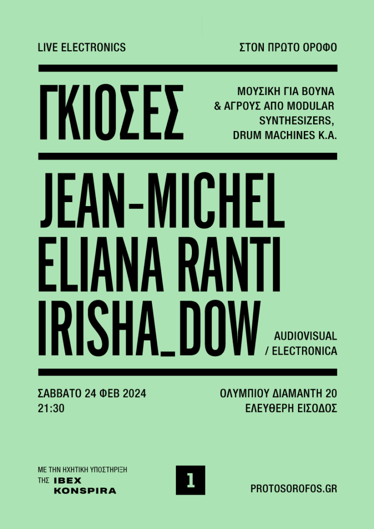 To Σάββατο 24 Φεβρουαρίου ο Πρώτος Όροφος θα φιλοξενήσει για μια συναυλία τους Jean-Michel, Eliana Ranti, Irisha_Dow και τις Γκιόσες.