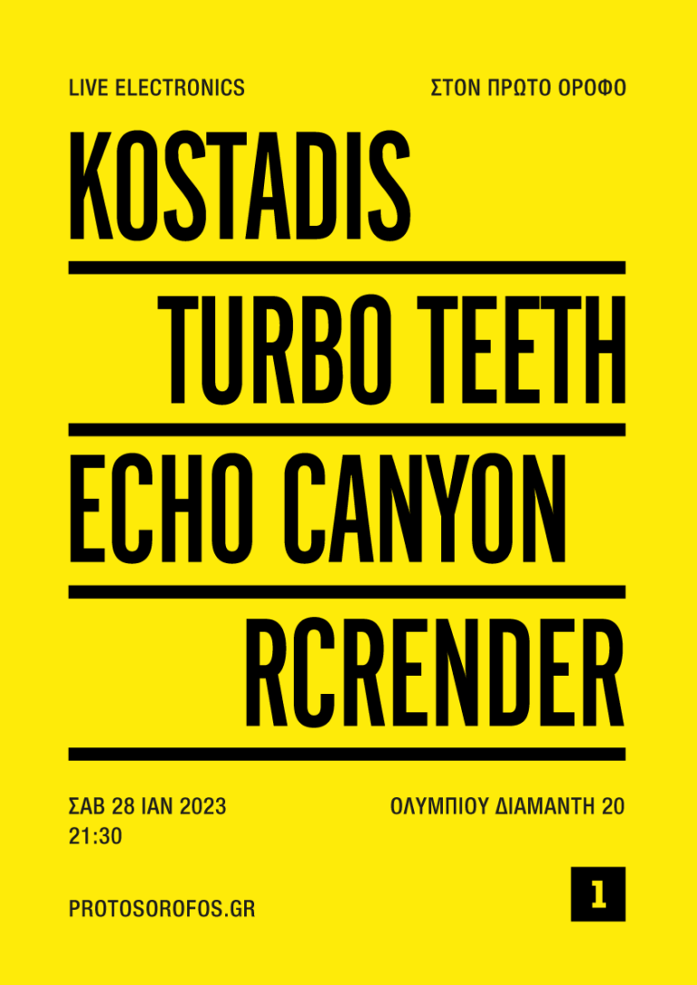 To Σάββατο 28 Ιανουαρίου στις 22:00 ο Πρώτος Όροφος θα φιλοξενήσει για μια συναυλία τέσσερα σόλο projects από την Αθήνα, τους Kostadis, Turbo Teeth, Echo Canyon και Rcrender.
