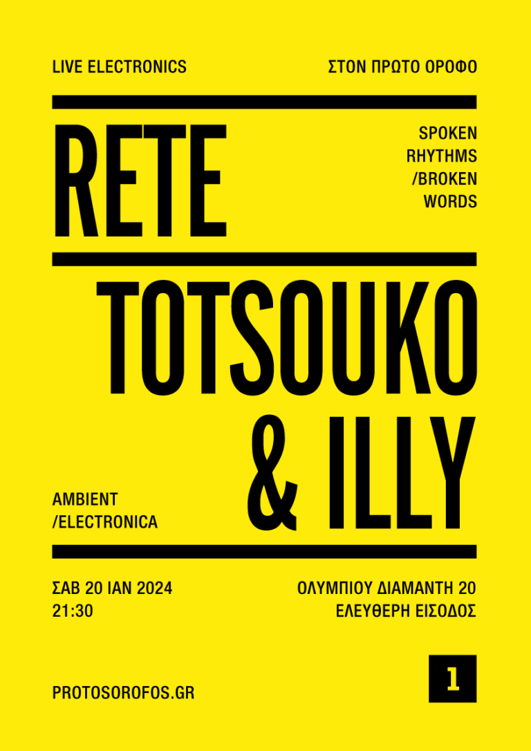 To Σάββατο 20 Ιανουαρίου ο Πρώτος Όροφος θα φιλοξενήσει για μια συναυλία τους Rete και τους Totsouko & Illy.