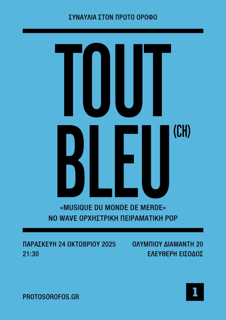 Την Παρασκευή 24 Οκτωβρίου ο Πρώτος Όροφος θα φιλοξενήσει για μια συναυλία τους Tout Bleu από την Γενεύη της Ελβετίας.